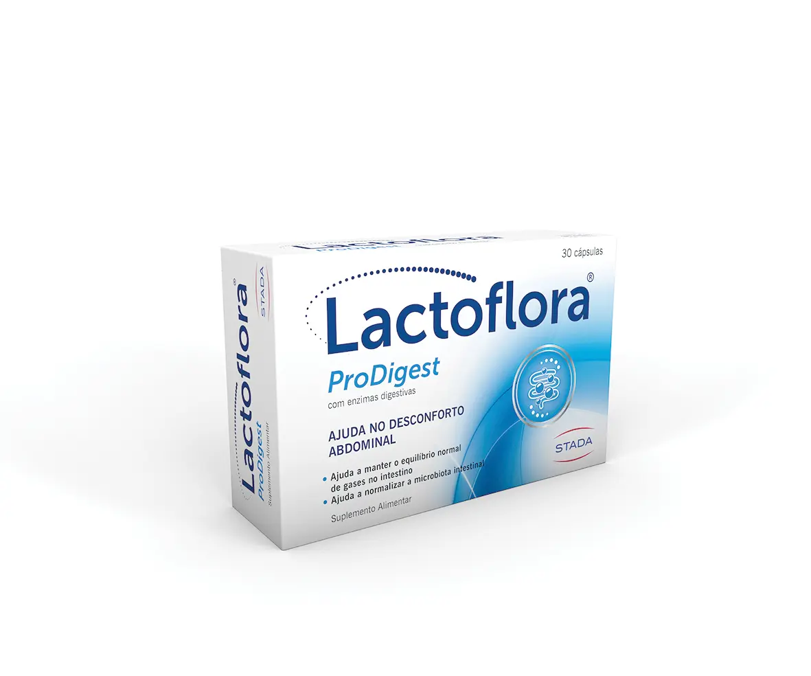 Lactoflora® ProDigest é uma fórmula probiótica que fortalece a presença de Lactoflora no campo da saúde gastrointestinal. Uma combinação única de enzimas digestivas, 9 estirpes de probióticos e extratos de plantas para normalizar a função digestiva, para o desconforto abdominal, flatulência ou espasmo abdominal. A combinação de probióticos e prebióticos é importante na normalização da microbiota intestinal. Adequado para administração a longo prazo.