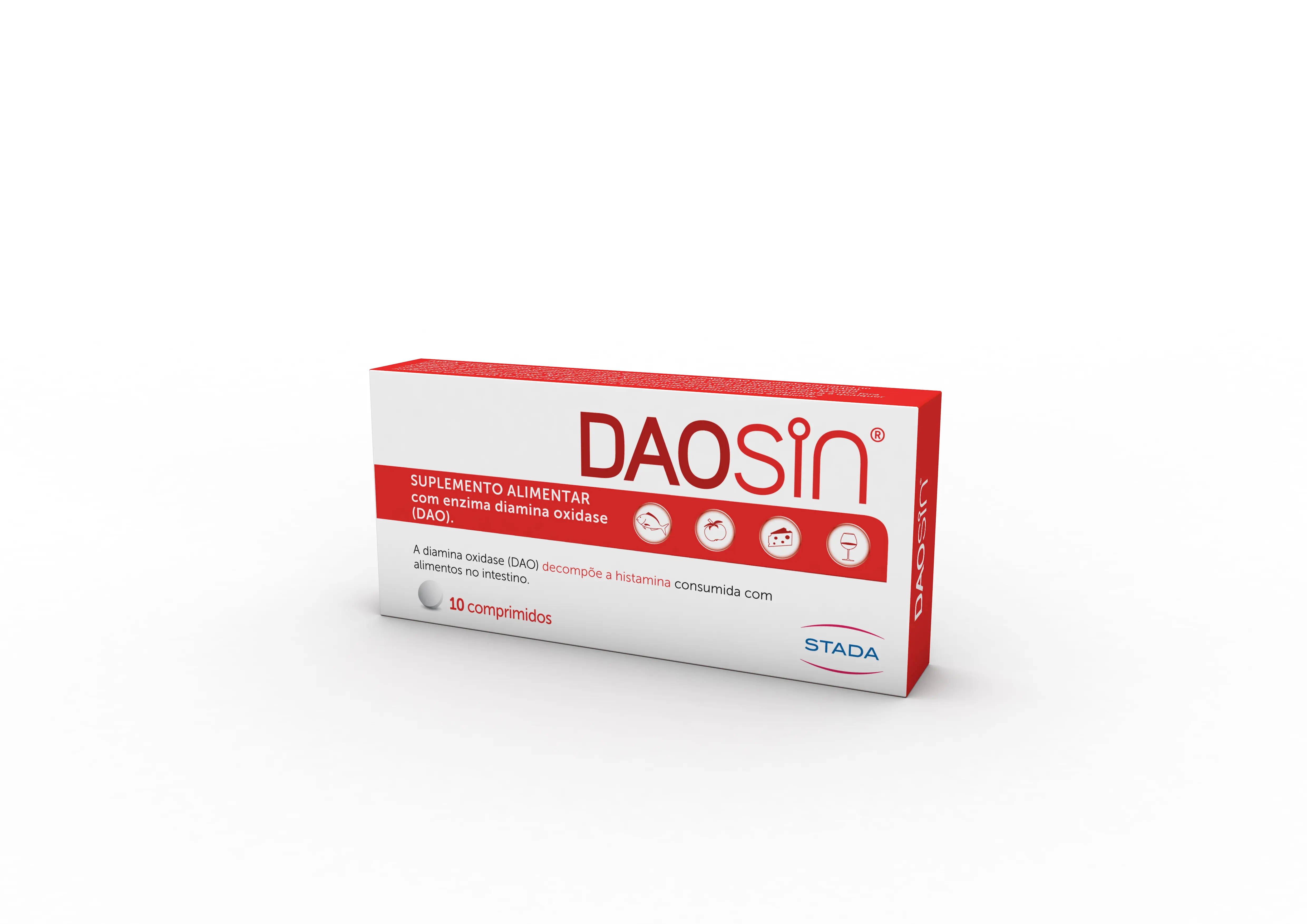 Daosin® é um suplemento alimentar que contém a enzima diamina oxidase (DAO). A diamina oxidase (DAO) decompõe a histamina consumida com alimentos no intestino.